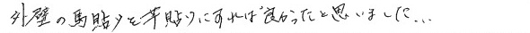 外壁の馬貼りを芋貼りにすれば良かったと思いました。